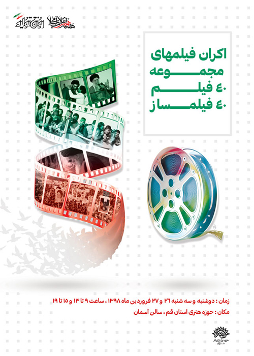 به گزارش روابط عمومی حوزه هنری استان قم، روز دوشنبه و سهشنبه 26 و 27 فروردین ماه 1398 همزمان با هفته هنر انقلاب 40 فیلم برگزیده از 40 کارگردان شهر قم با موضوع انقلاب اسلامی و دفاع مقدس در سالن آسمان حوزه هنری قم اکران میشود. این 40 فیلم متعلق به فیلمسازانیست که عصر پنجشنبه 21 فروردین ماه 1398 در آیین بزرگداشت 40 فیلم، 40 فیلمساز از آنها تجلیل شد. اکران آثار در نوبت صبح از ساعت 9 تا 13 و عصر از ساعت 15 تا 19 انجام خواهد شد و حضور در سالن و تماشای آثار برای عموم علاقمندان آزاد و رایگان است.