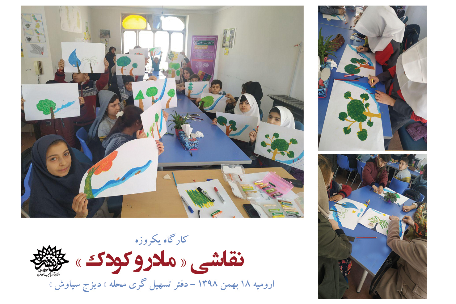 « دفترهای تسهیلگری و توسعه محلات » زیر نظر استانداری آذربایجان غربی در هشت نقطه از مناطق حاشیه نشین و کم برخوردار شهرستان ارومیه و با هدف « کاهش آسیبهای اجتماعی» ایجاد شده است که در همین راستا بر اساس توافقات صورت گرفته ما بین حوزه هنری آذربایجان غربی و دفتر امور اجتماعی و فرهنگی استانداری آذربایجان غربی « کارگاه نقاشی مادر و کودک » در محلهای دیزج سیاوش و کوی آذربایجان ارومیه برگزار شد.